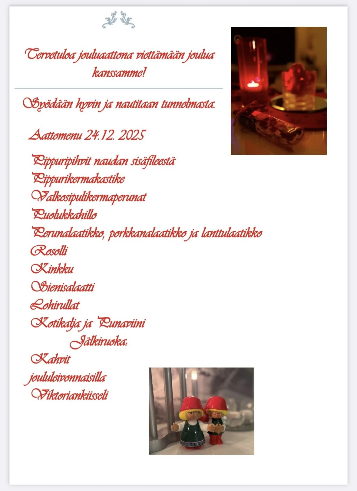 Joulupöytä yhdeksälle hengelle